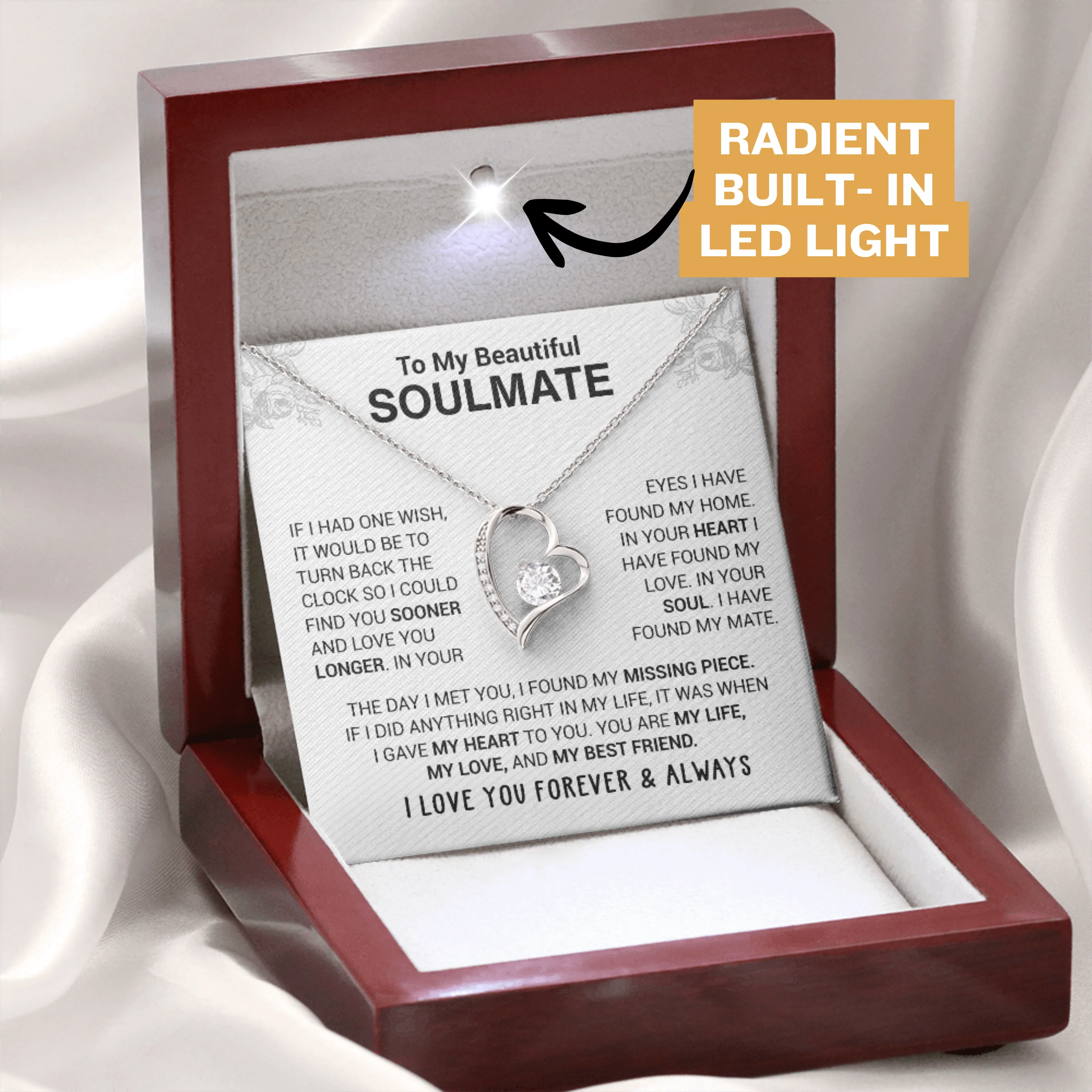 “To My Beautiful Soulmate – If I had one wish, it would be to turn back the clock so I could find you sooner and love you longer.