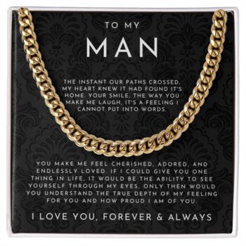Your “To My Man” Necklace is lovingly packaged in a complimentary soft-touch box for easy gifting.
